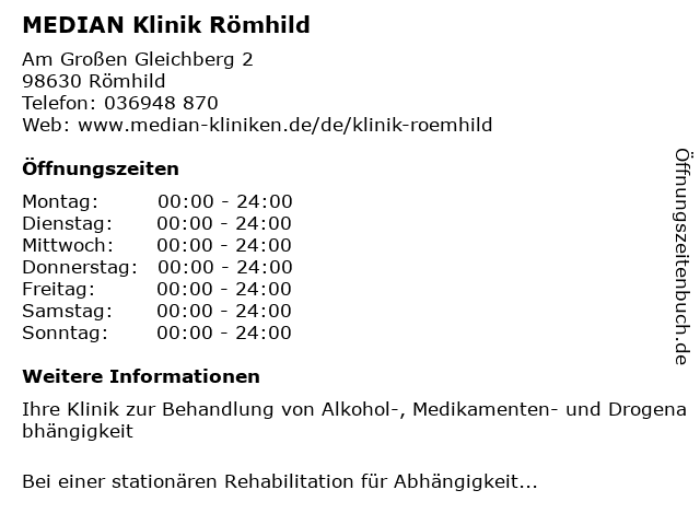 | Öffnungszeiten MEDIAN Klinik Römhild in Römhild anzeigen | |