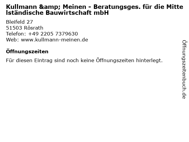 | Kullmann & Meinen - Beratungsges. für die Mittelständische Bauwirtschaft mbH anrufen | |