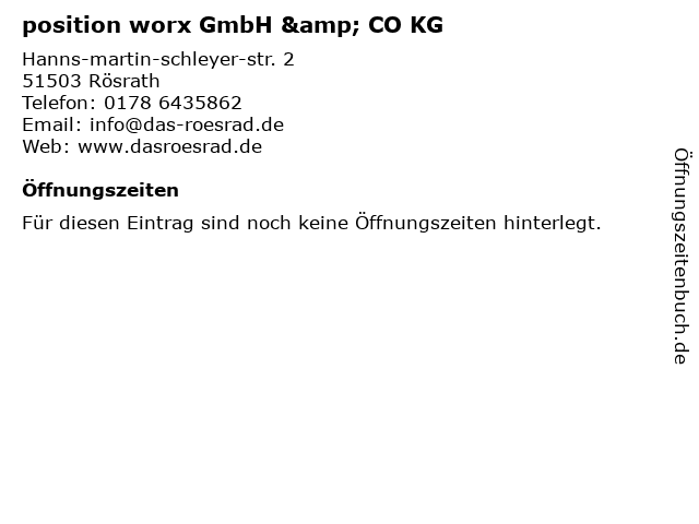 | Öffnungszeiten position worx GmbH & CO KG in Rösrath anzeigen | |