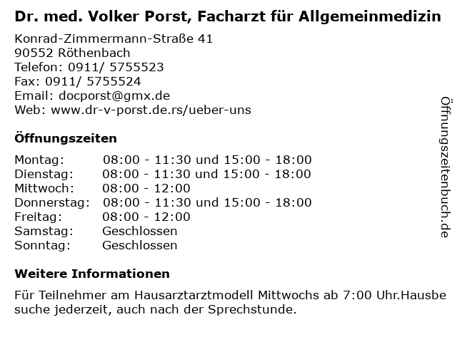 | Montag | 08:00-11:30 und 15:00-18:00 |