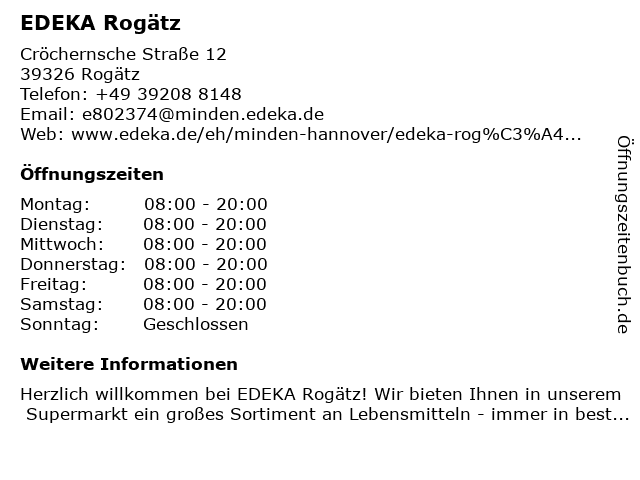 | Öffnungszeiten EDEKA Rogätz in Rogätz anzeigen | |