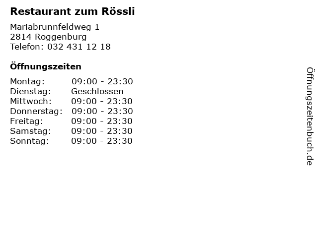 | Öffnungszeiten Restaurant zum Rössli in Roggenburg anzeigen | |