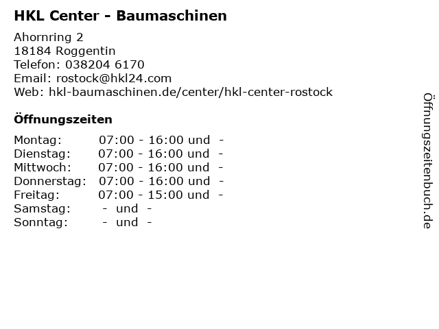 | Öffnungszeiten HKL Center - Baumaschinen in Roggentin anzeigen | |