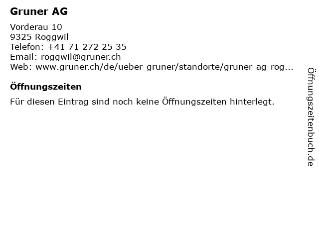 | Öffnungszeiten Gruner AG in Roggwil anzeigen | |
