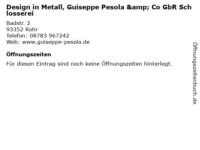 | Design in Metall, Guiseppe Pesola & Co GbR Schlosserei anrufen | |