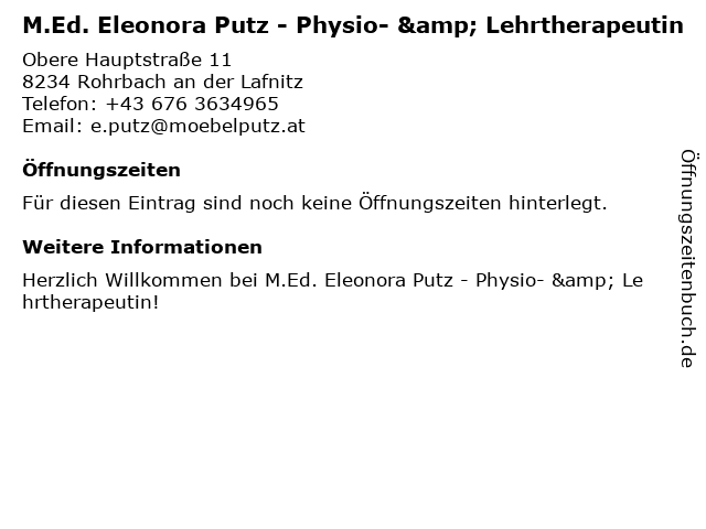 | M.Ed. Eleonora Putz - Physio- & Lehrtherapeutin anrufen | |