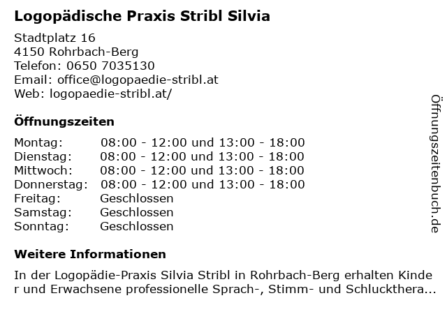 Branchen & Suchbegriffe zu Logopädische Praxis Stribl Silvia:logopädische, praxis, silvia, stribl |