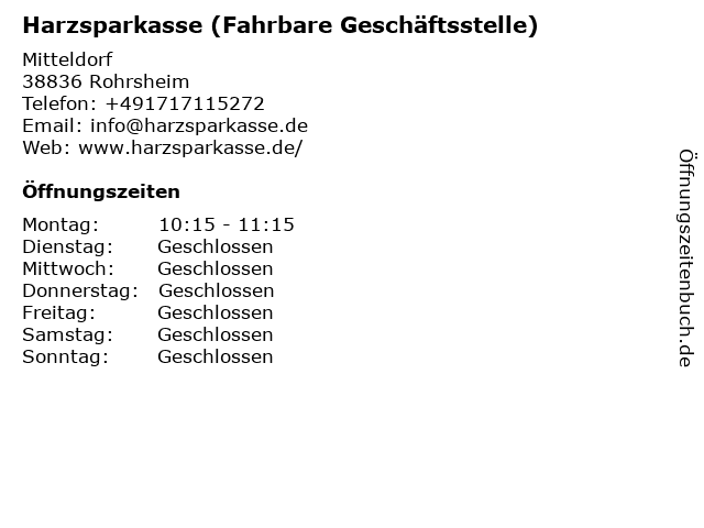 Branchen & Suchbegriffe zu Harzsparkasse (Fahrbare Geschäftsstelle):fahrbare, geschäftsstelle, harzsparkasse |