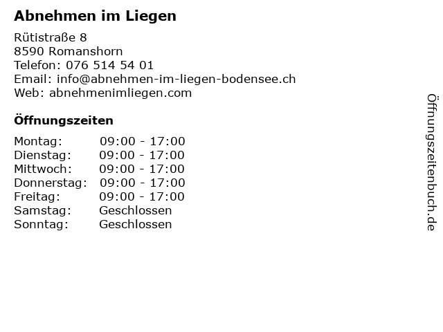 | Öffnungszeiten Abnehmen im Liegen in Romanshorn anzeigen | |