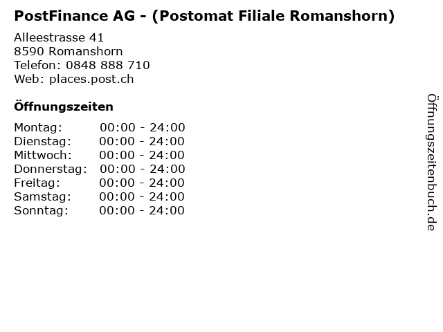 Branchen & Suchbegriffe zu PostFinance AG - (Postomat Filiale Romanshorn):geldabheben, kontoinformation, kontostand, postbank. geldautomat, postfinance, postomat, romanshorn, sb-standort, scheine |
