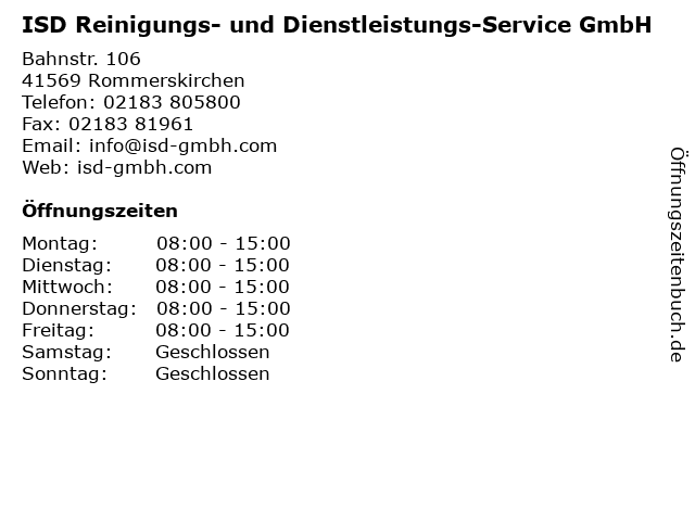 Branchen & Suchbegriffe zu ISD Reinigungs- und Dienstleistungs-Service GmbH:bewachungs, dienstleistungs, gebäudereinigungsunternehmen, glasreinigungsunternehmen, hausmeisterservice, isd, reinigungs, schließgesellschaften, service |
