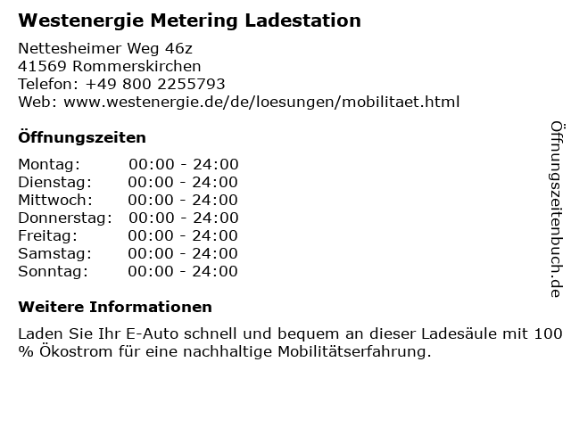 Öffnungszeiten Westenergie Metering Ladestation in Rommerskirchen anzeigen