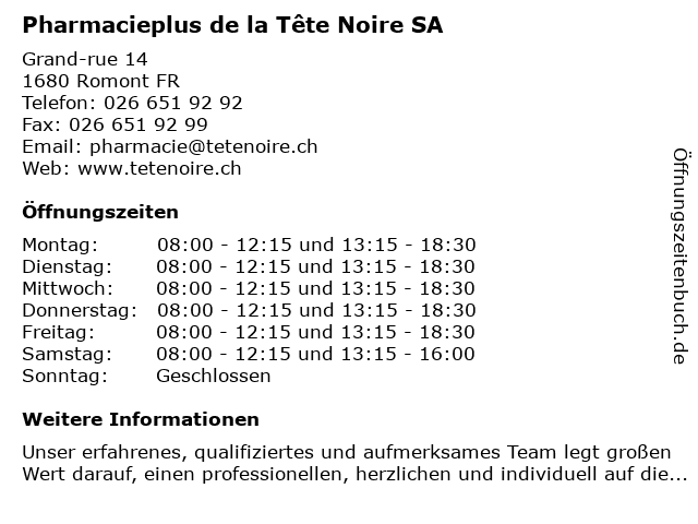 Branchen & Suchbegriffe zu Pharmacieplus de la Tête Noire SA:de, homöopathie, kosmetikgeschäft, la, naturheilkunde, noire, pharmacieplus, sa, tête |
