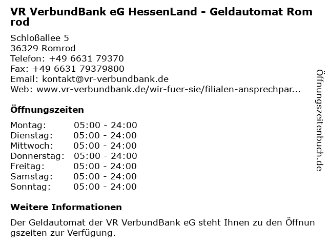 Branchen & Suchbegriffe zu VR VerbundBank eG HessenLand - Geldautomat Romrod:bargeld, eg, geldautomat, hessenland, verbundbank, vr |