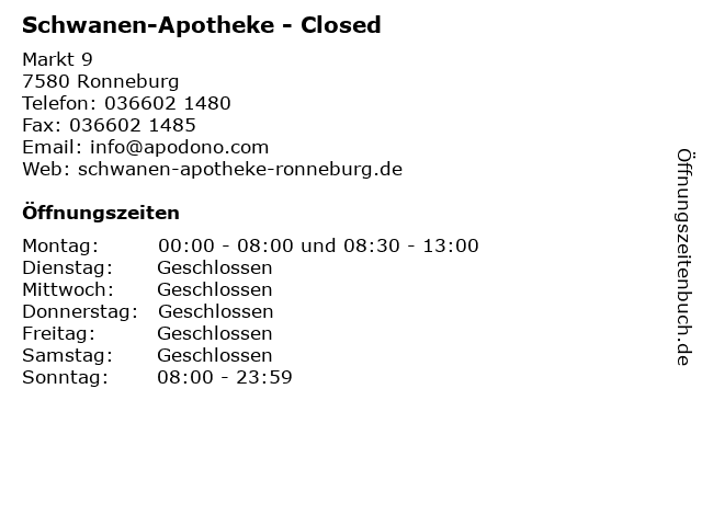 Öffnungszeiten Schwanen-Apotheke - Closed in Ronneburg anzeigen | |