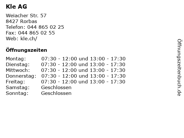 | Öffnungszeiten Kle AG in Rorbas anzeigen | |
