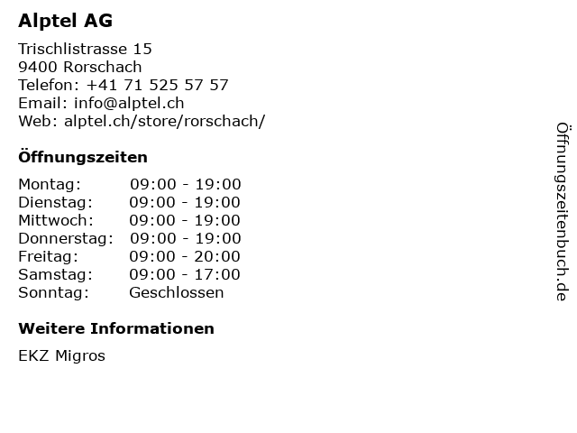 Öffnungszeiten Alptel AG in Rorschach anzeigen | |