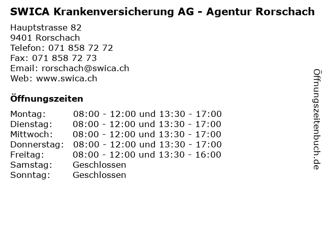 5 SWICA Krankenversicherung AG - Regionaldirektion St. Gallen (Entfernung: 11,06 km) Teufener Strasse 5, 9001 St. Gallen 6 SWICA Krankenversicherung AG - Agentur Altstätten (Entfernung: 11,78 km) Heidenerstrasse 1a, 9450 Altstätten |