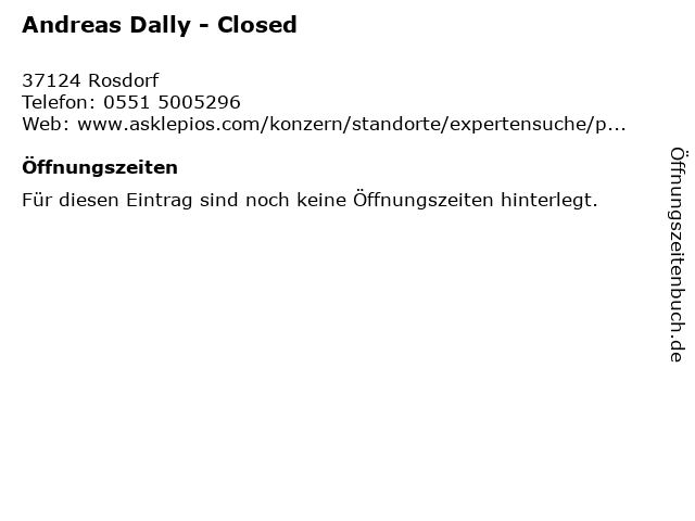 | Telefonnummer Andreas Dally - Closed in Rosdorf (0551 5005296) anrufen | |
