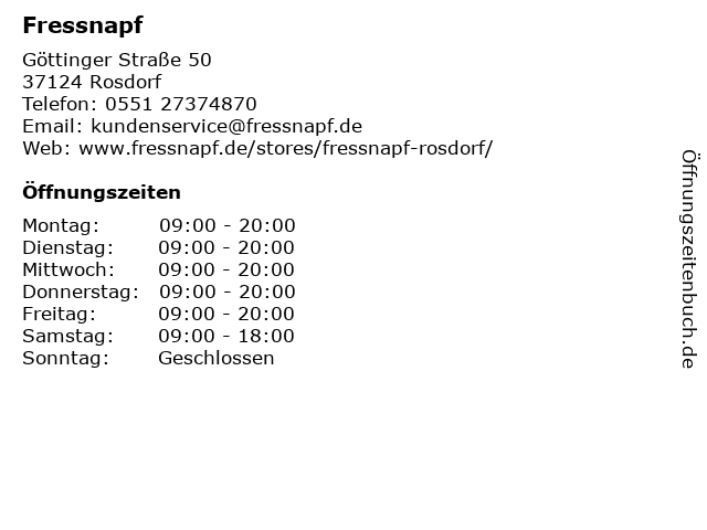 | Öffnungszeiten Fressnapf in Rosdorf anzeigen | |