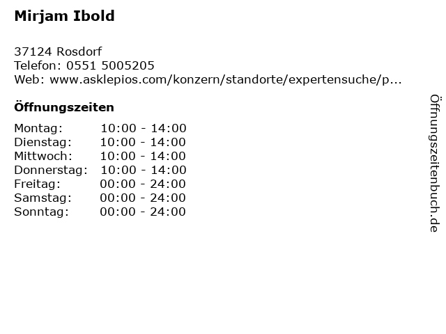 | Öffnungszeiten Mirjam Ibold in Rosdorf anzeigen | |