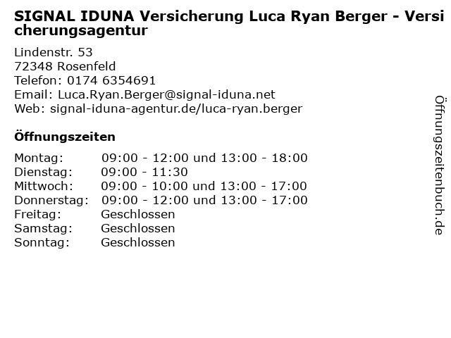 Branchen & Suchbegriffe zu SIGNAL IDUNA Versicherung Luca Ryan Berger - Versicherungsagentur:berger, iduna, luca, ryan, signal, versicherung, versicherungsagentur |