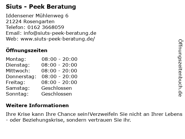 | Öffnungszeiten Siuts - Peek Beratung in Rosengarten anzeigen | |