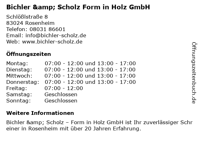 Branchen & Suchbegriffe zu Bichler & Scholz Form in Holz GmbH:bichler, form, holz, scholz |