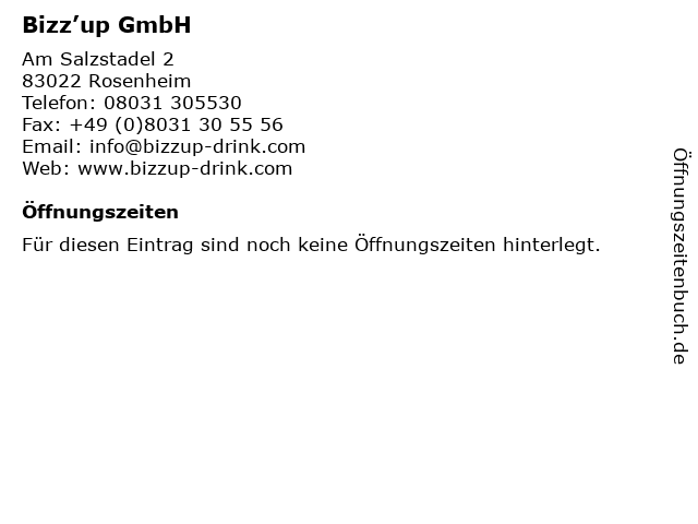 | Öffnungszeiten Bizz’up GmbH in Rosenheim anzeigen | |