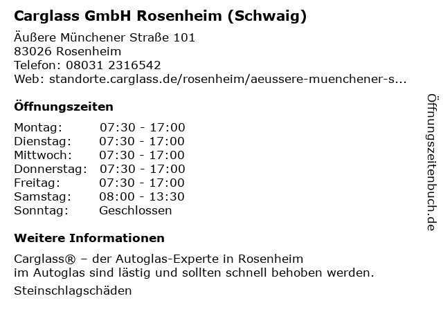 Branchen & Suchbegriffe zu Carglass GmbH Rosenheim (Schwaig):autoteile und -zubehör, autowerkstatt, carglass, geschäft für autoteile, geschäft für autozubehör, karosseriewerkstatt, lkw-werkstatt, schwaig, windschutzscheibenreparaturen |