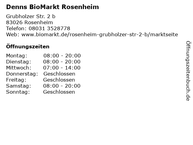 | Öffnungszeiten Denns BioMarkt Rosenheim in Rosenheim anzeigen | |