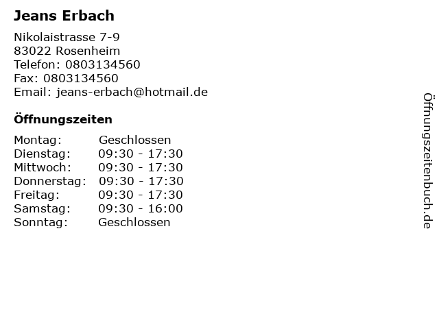 | Öffnungszeiten Jeans Erbach in Rosenheim anzeigen | |