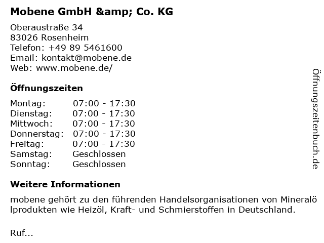 Öffnungszeiten Mobene GmbH & Co. KG in Rosenheim anzeigen | |