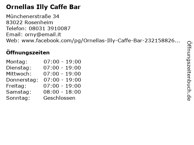 | Öffnungszeiten Ornellas Illy Caffe Bar in Rosenheim anzeigen | |