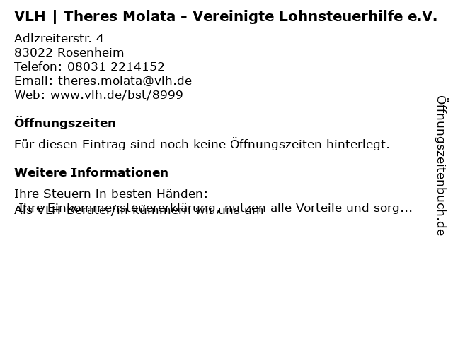 | VLH | Theres Molata - Vereinigte Lohnsteuerhilfe e.V. anrufen | |