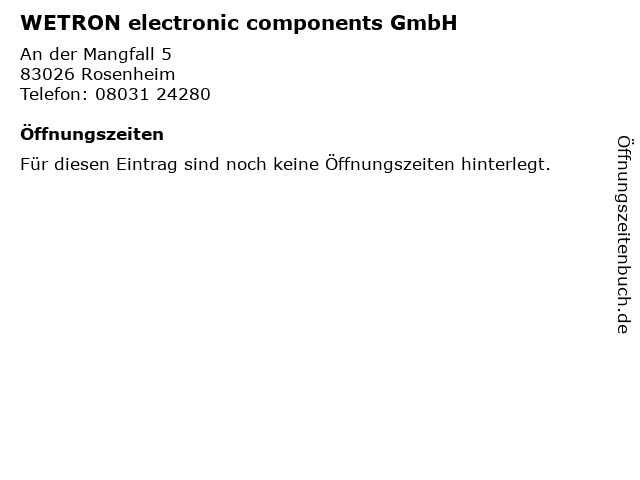 2 WETRON Gesellschaft für Elektronik und Automatisierungstechnik mbH (Entfernung: 0,52 km) Kolbermoorer Str. 8, 83026 Rosenheim 6 |