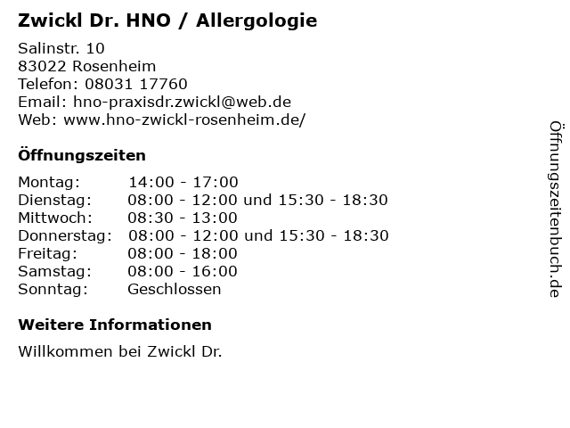 Branchen & Suchbegriffe zu Zwickl Dr. HNO / Allergologie:allergologie, dr., hno, zwickl |