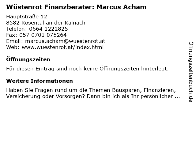 | Wüstenrot Finanzberater: Marcus Acham anrufen | |
