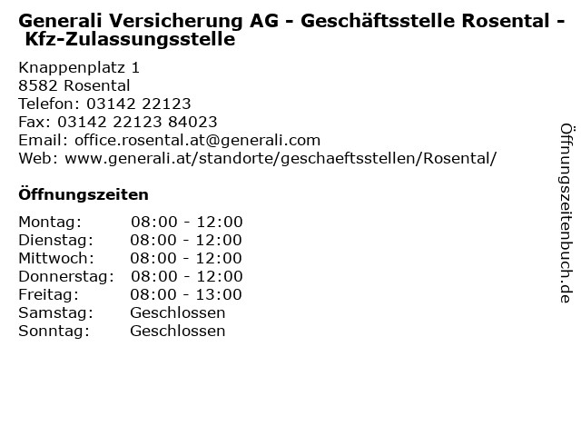 Branchen & Suchbegriffe zu Generali Versicherung AG - Geschäftsstelle Rosental - Kfz-Zulassungsstelle:generali, geschäftsstelle, kfz, kfz-zulassungsstellen, rosental, versicherung, zulassungsstelle, zulassungsstelle! |