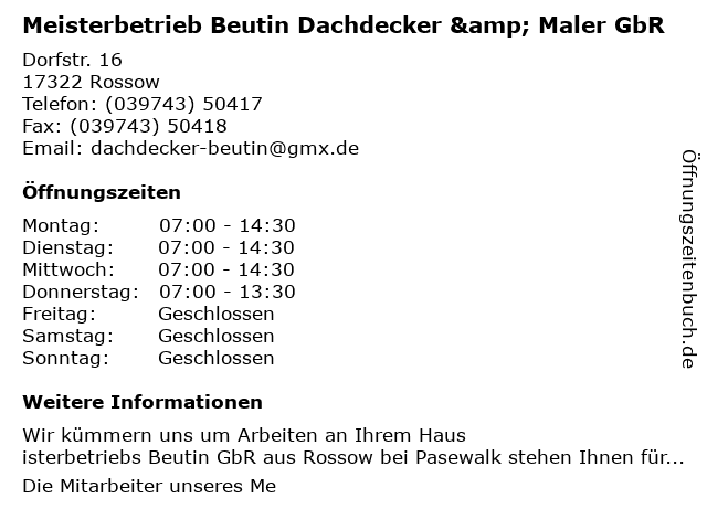 Branchen & Suchbegriffe zu Meisterbetrieb Beutin Dachdecker & Maler GbR:beutin, dacharbeiten, dachdecker, dachklempnerarbeiten, fassadenarbeiten, fußbodenverlegungen, gbr, maler, malerarbeiten, meisterbetrieb |