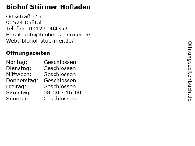 | Öffnungszeiten Biohof Stürmer Hofladen in Roßtal anzeigen | |
