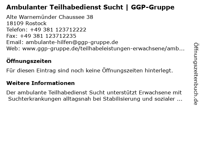 | Ambulanter Teilhabedienst Sucht | GGP-Gruppe anrufen | |