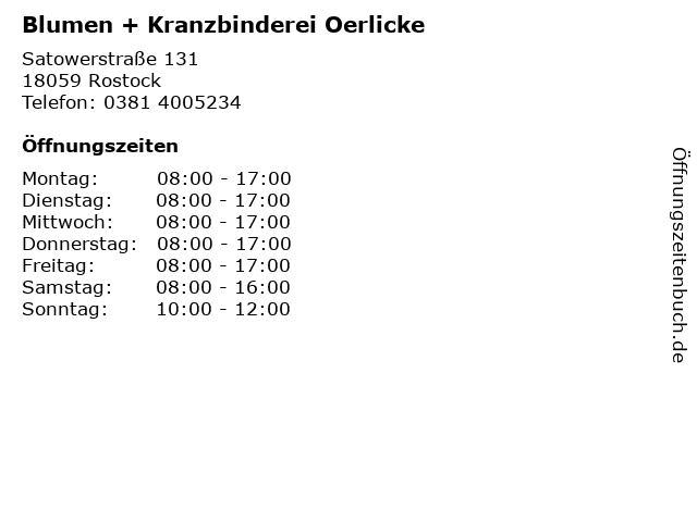 Blumen + Kranzbinderei Oerlicke in Rostock: Telefonnummer, Öffnungszeiten und Adresse