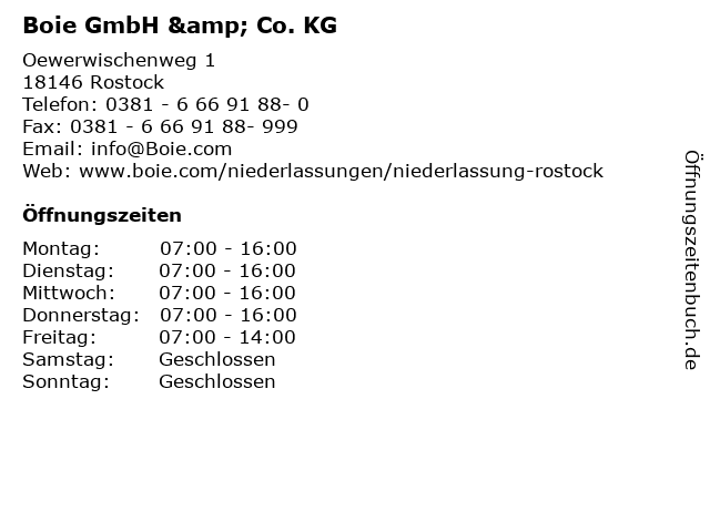 | Öffnungszeiten Boie GmbH & Co. KG in Rostock anzeigen | |