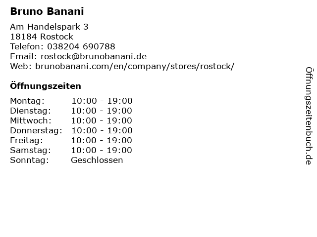 | Öffnungszeiten Bruno Banani in Rostock anzeigen | |