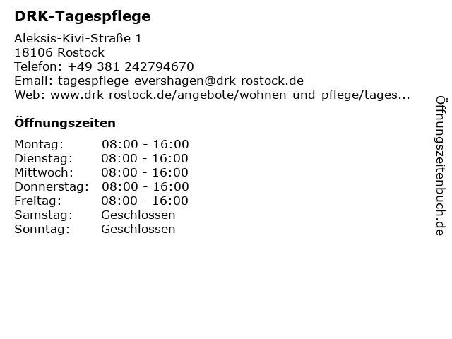 | Öffnungszeiten DRK-Tagespflege in Rostock anzeigen | |