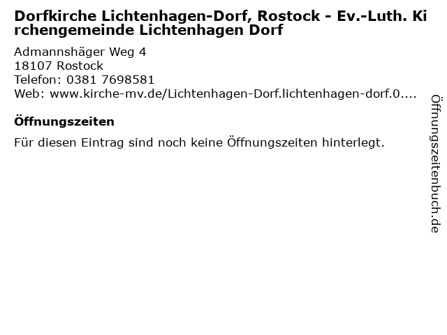 | Dorfkirche Lichtenhagen-Dorf, Rostock - Ev.-Luth. Kirchengemeinde Lichtenhagen Dorf anrufen | |