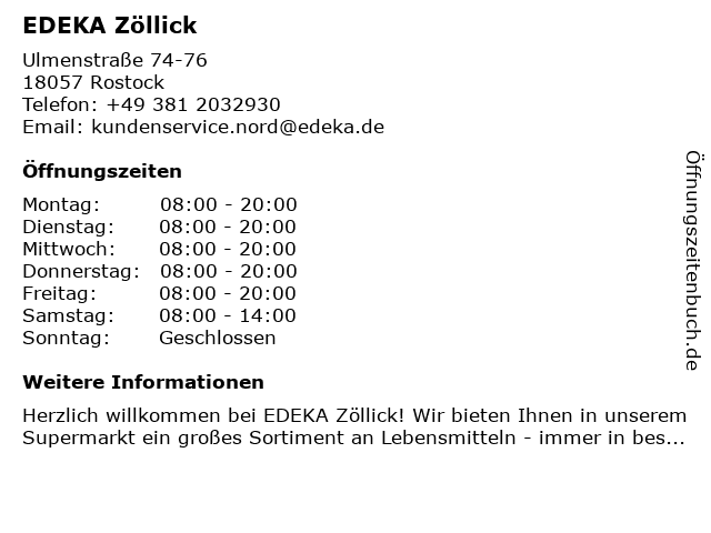 | Öffnungszeiten EDEKA Zöllick in Rostock anzeigen | |