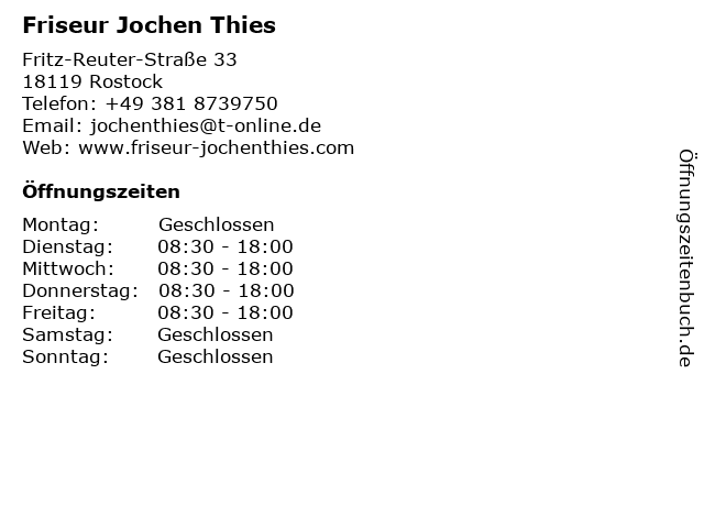 | Öffnungszeiten Friseur Jochen Thies in Rostock anzeigen | |