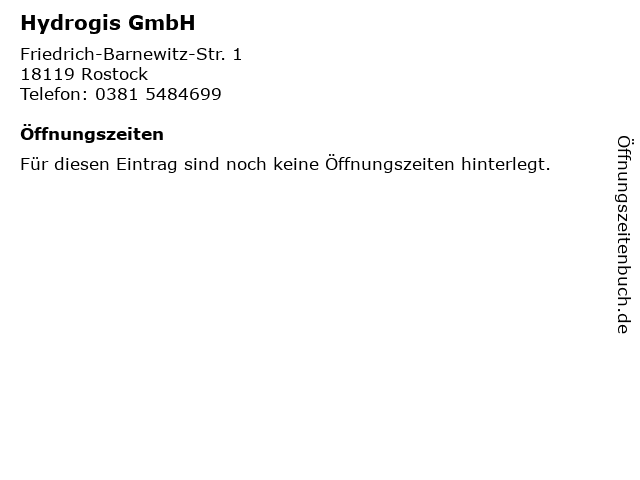 | Öffnungszeiten Hydrogis GmbH in Rostock anzeigen | |
